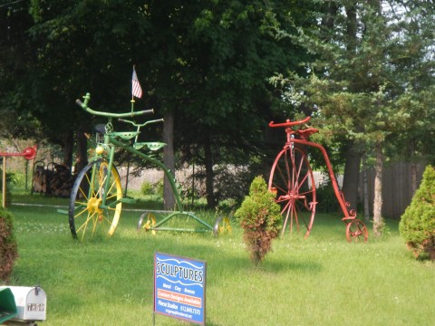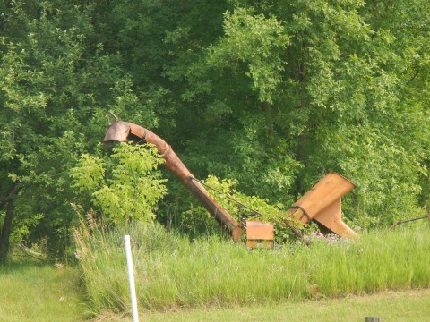 The next 37 miles are far less hilly and full of very interesting barns and other Americana. I like a barn with a good quilt on it. We had to make an additional stop in Norwood Young America (which is a really odd name for a town) for extra water since we were going through it like, well, water on a hot day. That and some extra food to deal with the heat helped everything and we continued to have a tailwind and make stellar progress. Of course, as soon as we got to Mayer, our luck changed a little with the road being closed for construction...time for another detour and I vaguely remembered this one from years ago. It turned out to be a really nice detour and far more scenic than the original route. Fawns jumped alongside the bike (really) and we climbed up and down rolling hills next to a lake passing ranches, old houses and sweeping hay fields being harvested.