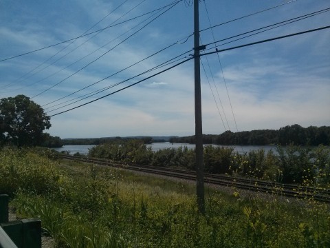 Fountain City is the classic Mississippi River town on Lake Pepin. Lake Pepin is a widening of the Mississippi caused by the convergence of the Chippewa River; it's also supposedly where water skiing was invented. At the Kwik Trip, I found a tub of guacamole and chips for lunch and Dan had the Angus Burger. We then had a pleasant conversation with some motorcycles who where also having the Angus Burger. The eventual conclusion: don't eat the Angus Burger at Kwik Trip. The day was now hot with the sun high in the sky.