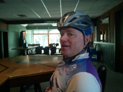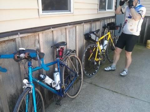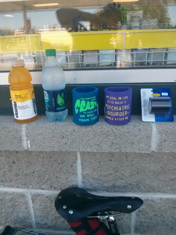 We decided to make to the control only 5 miles away and figure out something there. A long descent down Meyer's Valley Road and we came to the control. 43 miles left with at least one very steep climb and maybe 3,000 total feet. Not something to do sitting on the rails. Clearly, some padding was needed. The temporary solution: BEER COOLERS!