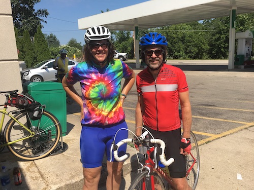 Keith and I have had long discussions about PBP in the last months.  He had been planning on going but is now uncertain after an accident 3 weeks ago broke his collarbone.  This ride was an experiment to see how things would go with it.  Still some discomfort, but he's a super strong rider.  I'm now a fan and hope he goes.